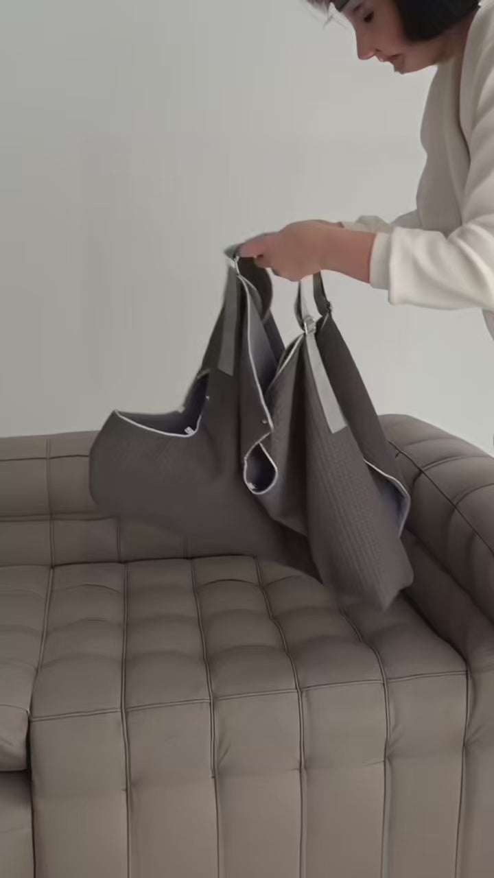 Tirez sur le sac en nylon plié à l'intérieur de la pochette. Il se déploie en 2 secondes. Pour replier, rangez le sac dans la pochette et fermez les boutons-pression. Le mousqueton vous permet de l'accrocher partout.